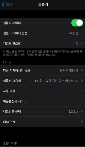 혹시 출장 등으로 국제 데이터 계획이 있는 경우 데이터 로밍을 계속 켜놓으셔야 하죠.