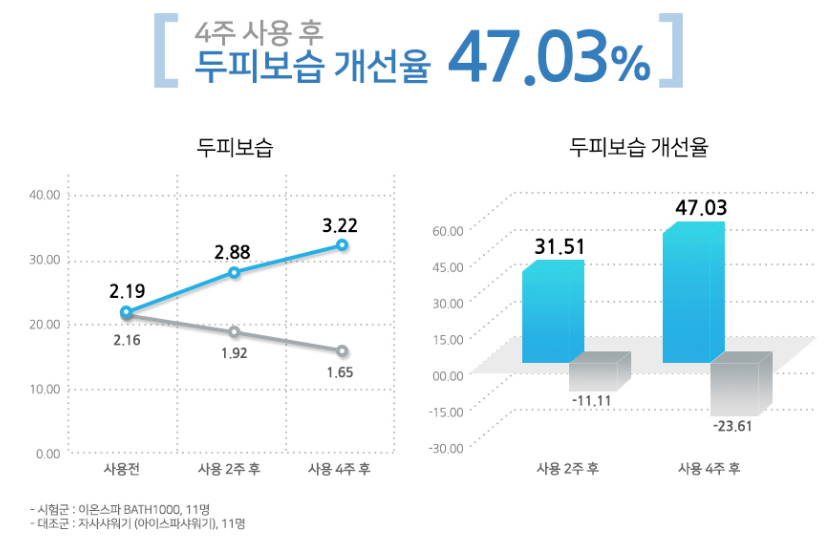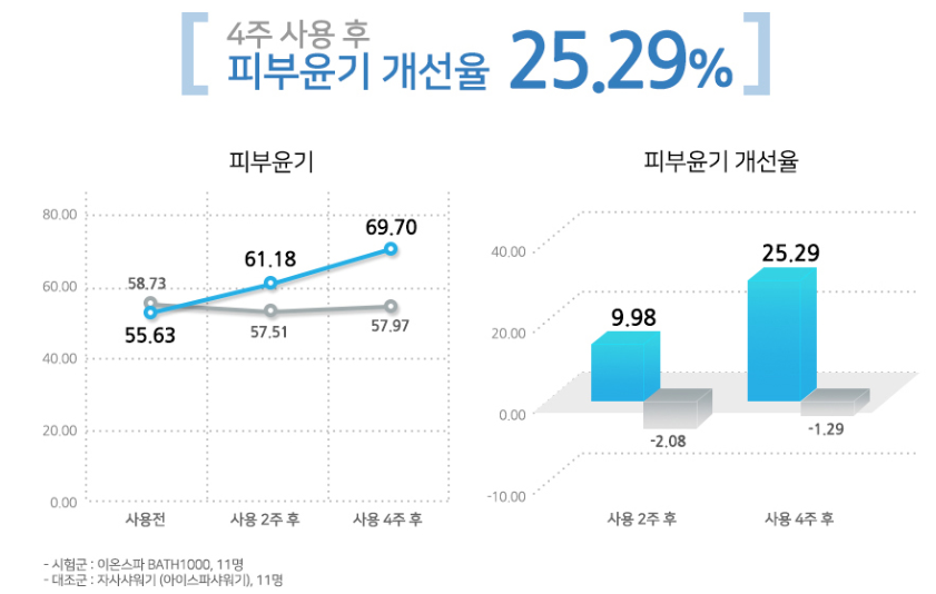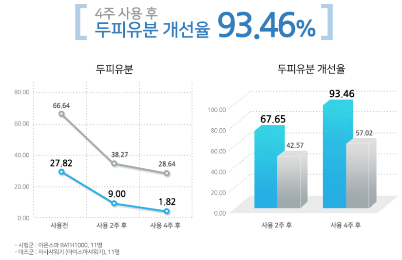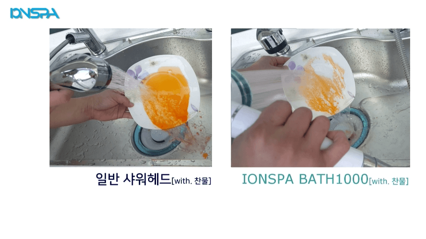 기존 샤워기와 이온 스파 BATH 100기를 비교했을 때 정말 세정 효과가 있었습니다.