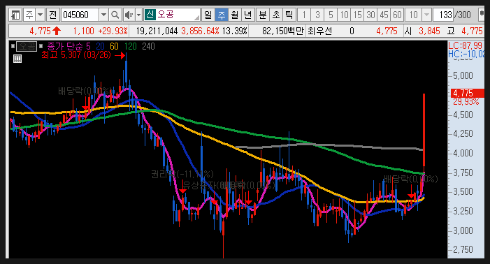 상한가를 기록한
