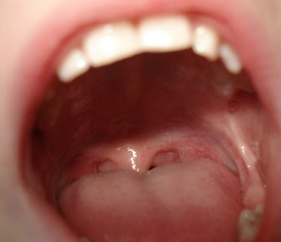 - 때로는 편도선 위에 하얀 패치나 고름 부분이 형성