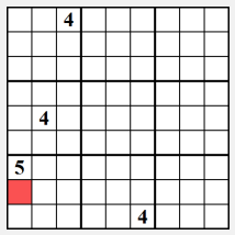 따라서 블록/열/열 내의 하나의 셀에만 4라고 하는 숫자를 넣을 수 있다면, 그 숫자는 거기에 적합하다는 것을 보증한다. 이 예는 적색으로 표시된 셀의 고유 예상 번호로써 숫자 4를 보여준다.