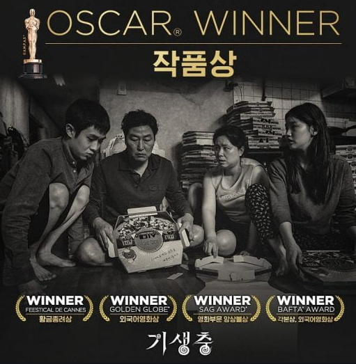 기생충은 지난 5월 30일 개봉해 국내에서만 천 만명 이상의 관객 동원은 물론 국외 대표 영화 시상식인 칸에서 황금종료상을 수상했으며, 특히 아카데미에서는 작품상, 감독상 등 4관왕을 차지 했습니다.