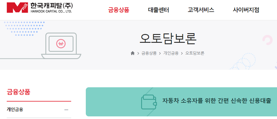 두 번째, 현대캐피탈의 "자동차 담보 대출" 입니다.