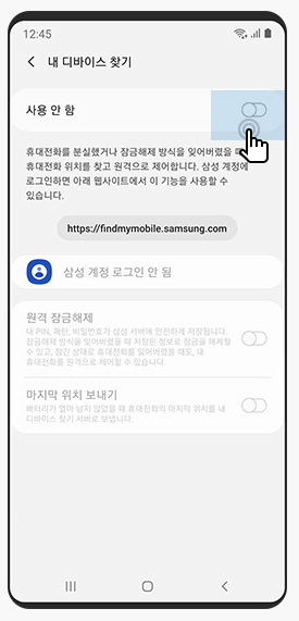 내 디바이스 찾기 -> 사용 안 함을 사용으로 변경해주세요.