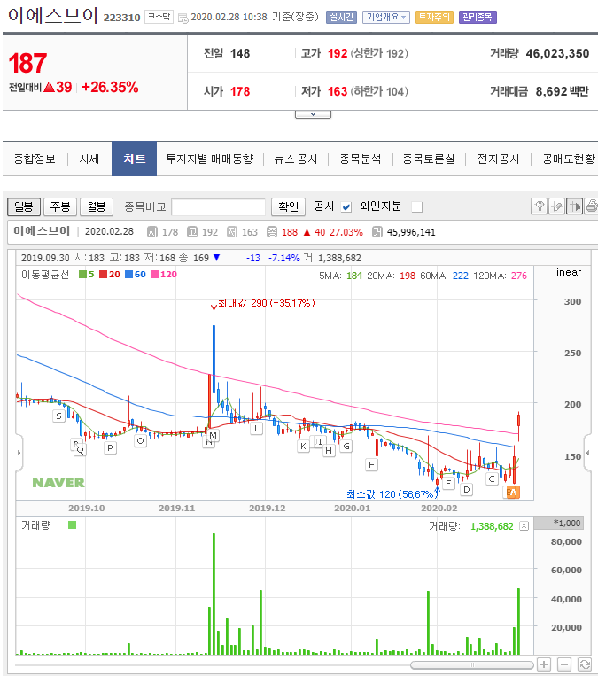 따라서 이에스브이 주주시라면 매우 집중적으로 주가의 향방을 보시길 권장드리며, 보수적으로 매도 시점을 고려해보셔야 합니다.
