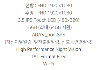 특히 블랙박스의 경우 차선이탈, 앞차출발, 신호등변경 알림 기능이 추가되어 있습니다.