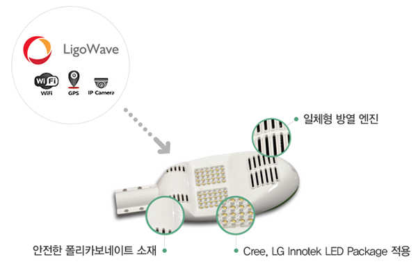 스마트가로등은 LED 가로등 내에 특수 개발한 와이파이(Wifi)와 특수 방열엔진을 AP로써 이용이 가능하다고 합니다.