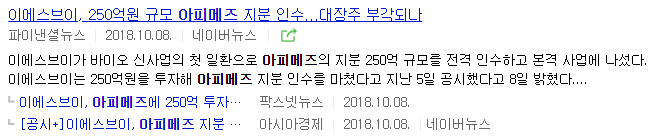 에이스브이의 경우 2018년 말쯤에 바이오 제약사인 아피메즈의 상당 지분을 250억원으로 인수했다는 걸 기억하시길 바랍니다.