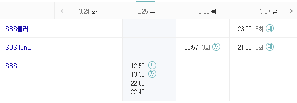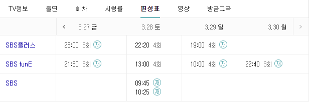 SBS플러스, SBS funE, SBS 채널에서 위와 같이 오전, 오후, 저녁, 늦은 밤까지 여러 시간에 트로신이 떴다 재방송을 방송하니, 시간을 참고해서 시청하시면 됩니다!