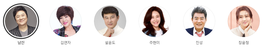 - 출연자: 남진, 김연자, 설운도, 주현미, 장윤정, 진성, 붐, 정용화