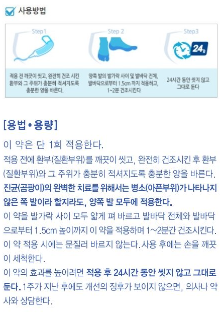 1. 도포하기 전에 환부를 깨끗히 씻고 꼭 완전히 건조 시켜야 합니다.