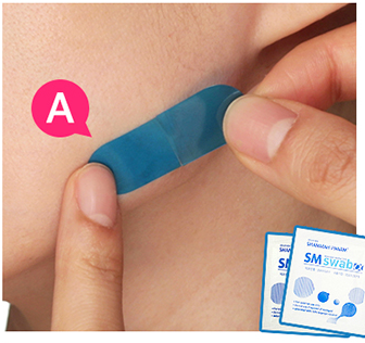 2. 동봉되어 있는 알콜솜으로 부착할 부위를 깨끗하게 닦아준 뒤에 고정점 A를 붙여줍니다. 알콜솜으로 닦은 후에 충분히 말려주셔야 해요.