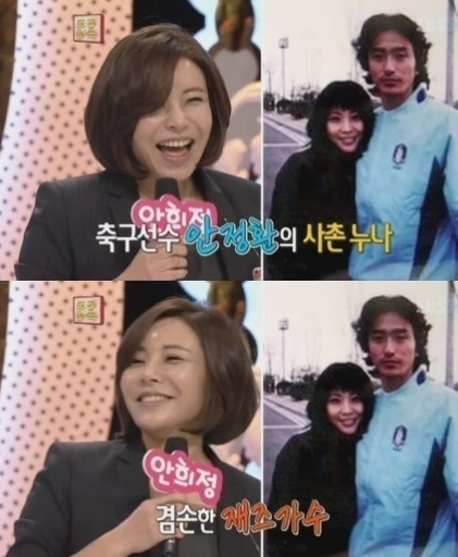 안희정씨와 안정환씨는 7살 터울로 두 분은 사실 사촌지간입니다. 미인으로 안정환씨가 안희정씨를 많이 닮은 게 보이네요.