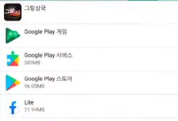 그리고 애플리케이션 항목 중에 그랑삼국을 찾으실 수 있으실 거예요.