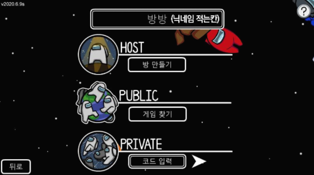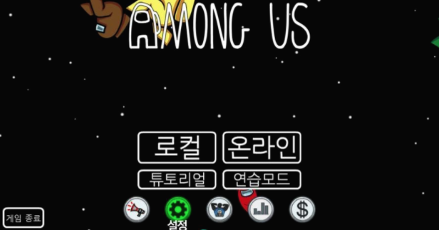 어몽어스를 처음 시작하면 튜토리얼, 연습모드, 로컬, 온라인으로 나누어집니다.