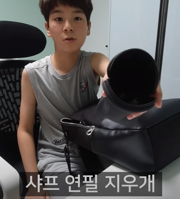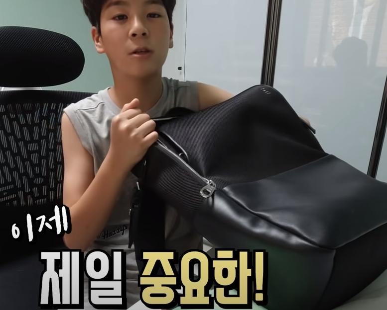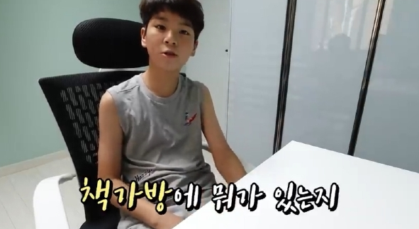 정동원군은 영상에서 "제 책가방에 무엇이 있는지 궁금해하시는 분들이 많아서 공개하기로 했습니다." 라며 본인의 백팩을 열었습니다.