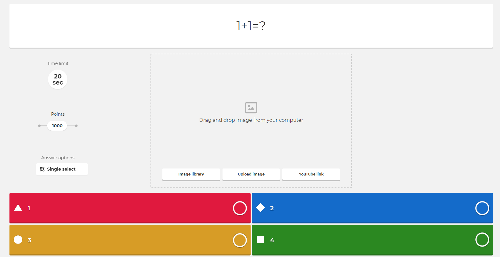 아래와 같은 식으로 질문을 만들고 제한 시간과 포인트를 넣어주시면 됩니다.