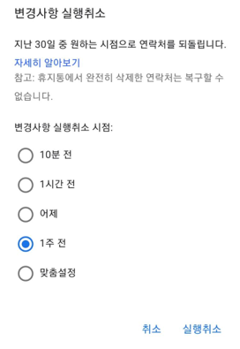 그러면 변경사항 실행취소에서 원하시는 시점으로 연락처 복구가 가능해요!