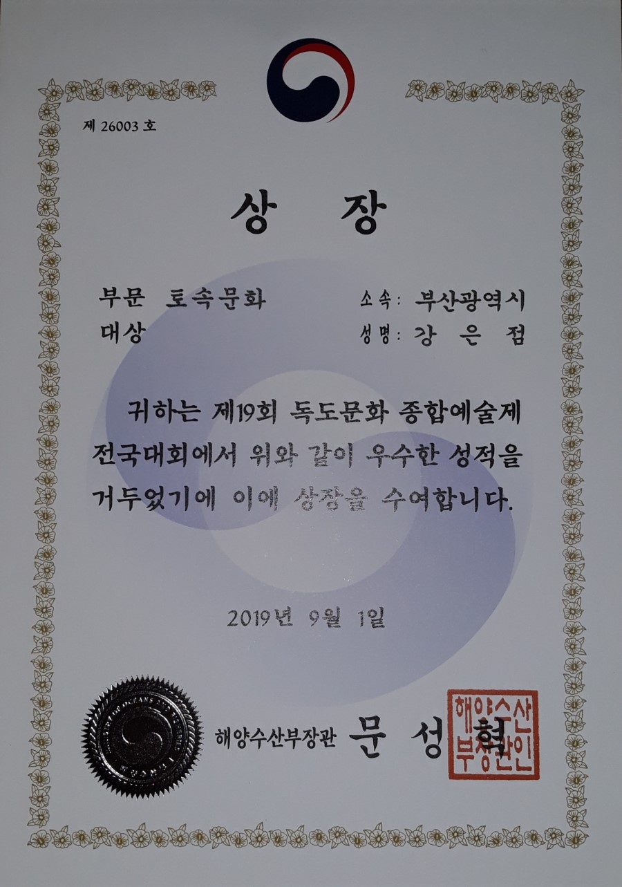 대단한 건 점을 봐주시는 분이 경상도대표로 손꼽히고, 해양수산부장관의 상장도 받으셨던 거예요.