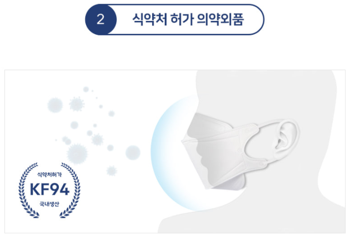 또한 식약처에서 허가 받은 KF94 마스크입니다. 국대마스크에서는 품목허가번호는 KF94 제 1188-1호로 기재해놨어요.