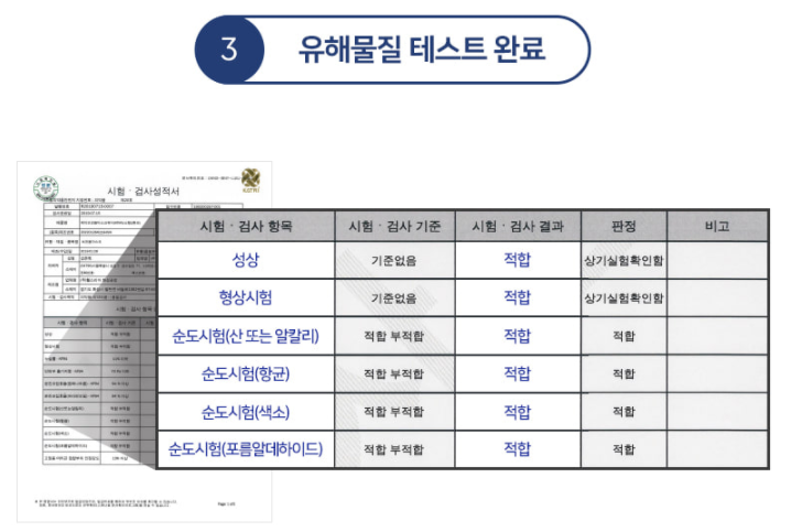 PH, 형광물질, 색소 등 유해물질 테스트도 합격했다고 해요.