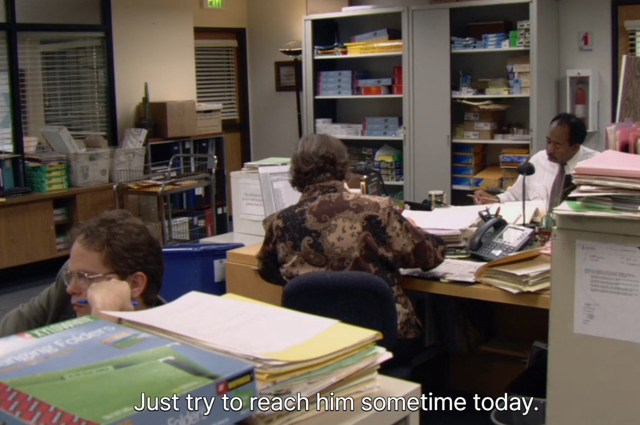 Michael: Then why, why isn't in my hand? Because a company runs on efficiency of communication. So what's the problem, Pam? Why didn't I get it?