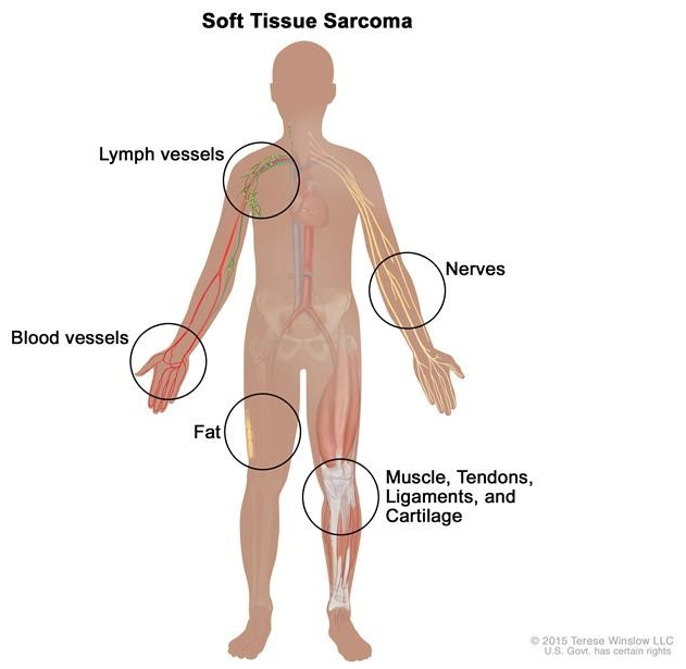 육종암은 신체의 연조직(즉, 근육, 힘줄, 지방, 림프관, 혈관, 신경)에서 발생하는 암을 광범위하게 정의한다. 이러한 암은 머리, 목, 팔, 다리, 가슴, 복부에서 가장 흔하게 발견되는 반면, 신체 어느 곳에서도 발병할 수 있다. 육종암에는 여러 가지 종류가 있으며, 암이 시작되고 종류에 따라 현미경으로 보면 세포가 다르게 보일 것이다. 육종암은 성인과 어린이들에게서 발생한다.