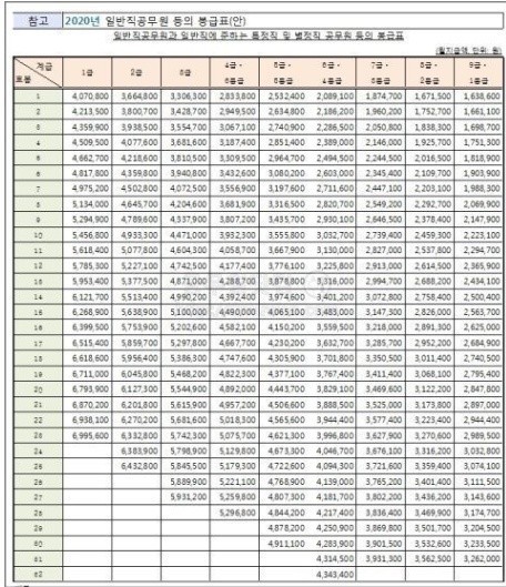 안녕하세요. 2020년 공무원 봉급표를 공개합니다.
