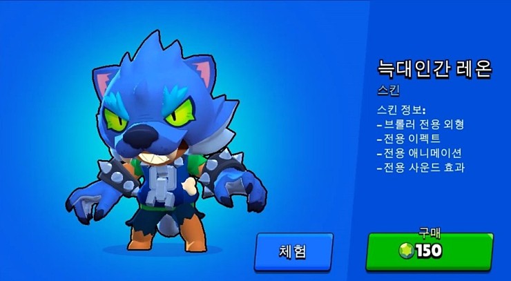 둘 다 가격이 조금 나가지만 너무 화려하고 잘 만든 스킨입니다! 특히 늑대인간 레온은 브롤스타즈 최초로 대사가 추가된 스킨입니다. 궁극기를 사용하면 "우아우아우~!" 하고 늑대 울음 소리를 내죠.