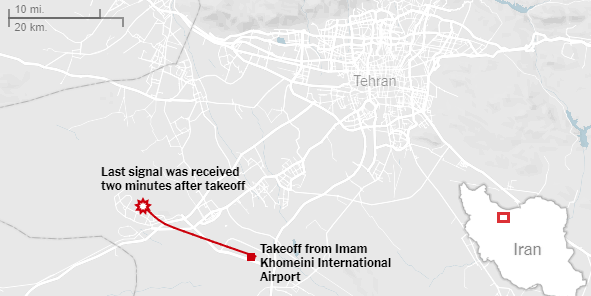 우크라이나 보잉 737-800이 테헤란에서 이륙한 직후 추락해