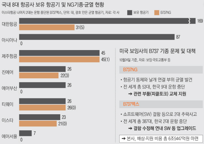 대한항공의 경우도 보잉 737 MAX를 올해 3월 투입할